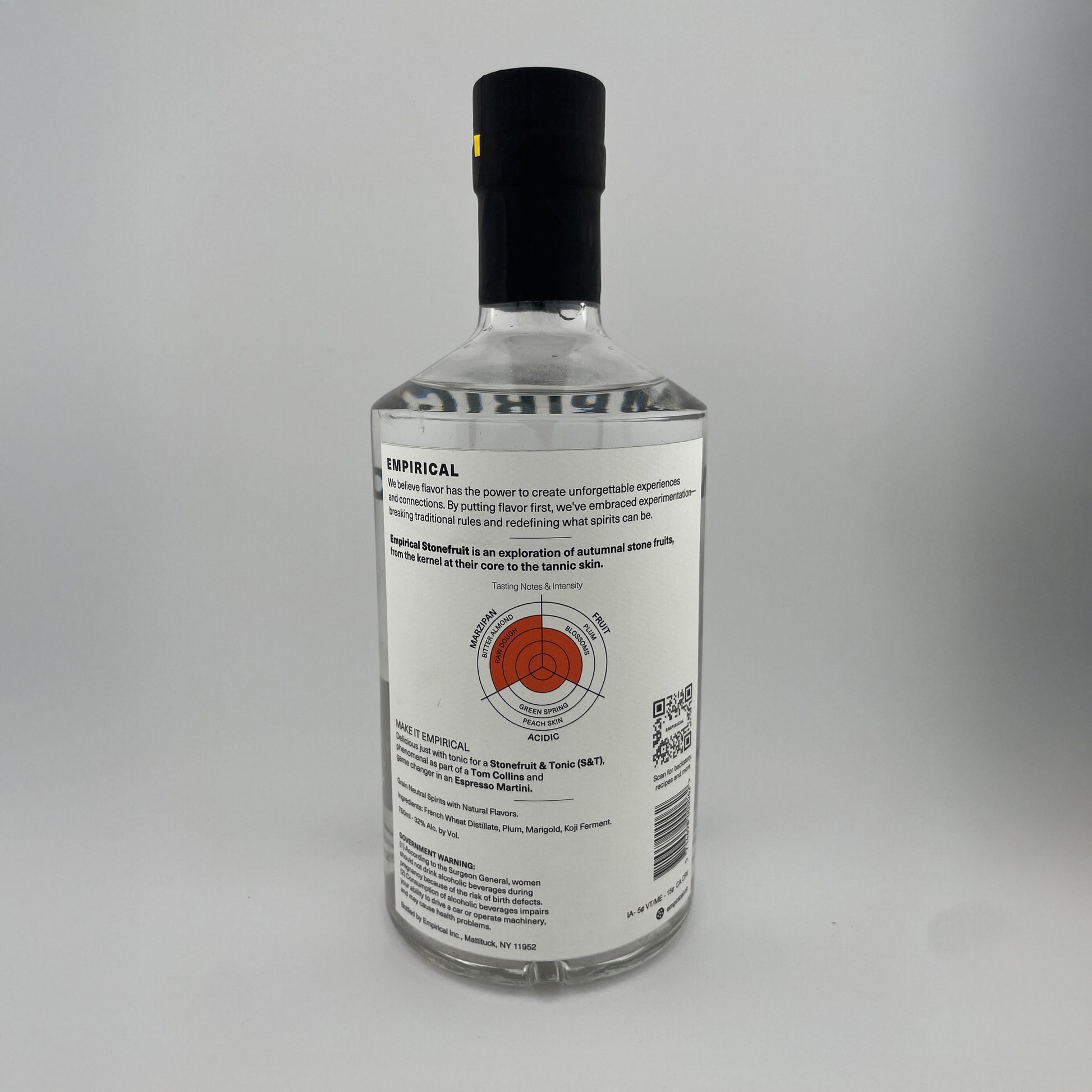 Empirical Stonefruit is an exploration of autumnal stone fruits, from the kernel at their core to the tannic skin. A spirit that highlights the marzipan-like notes of stone fruit kernels blended with the tea-forward fragrance of marigold petals.